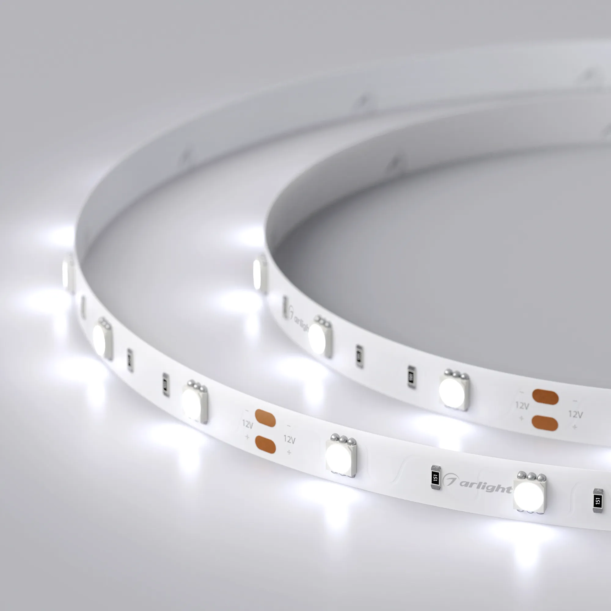 Лента светодиодная RT 2-5000 12V Cool 8K (5060, 150 LED, LUX) (Arlight, 7.2 Вт/м, IP20)