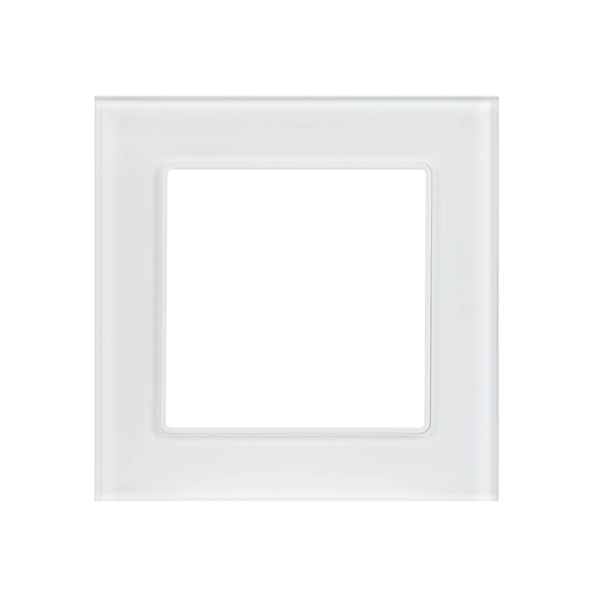 Рамка стеклянная на 1 пост, под встраиваемый механизм (квадрат). Цвет - белый. Ориентации монтажа - горизонтальная.
