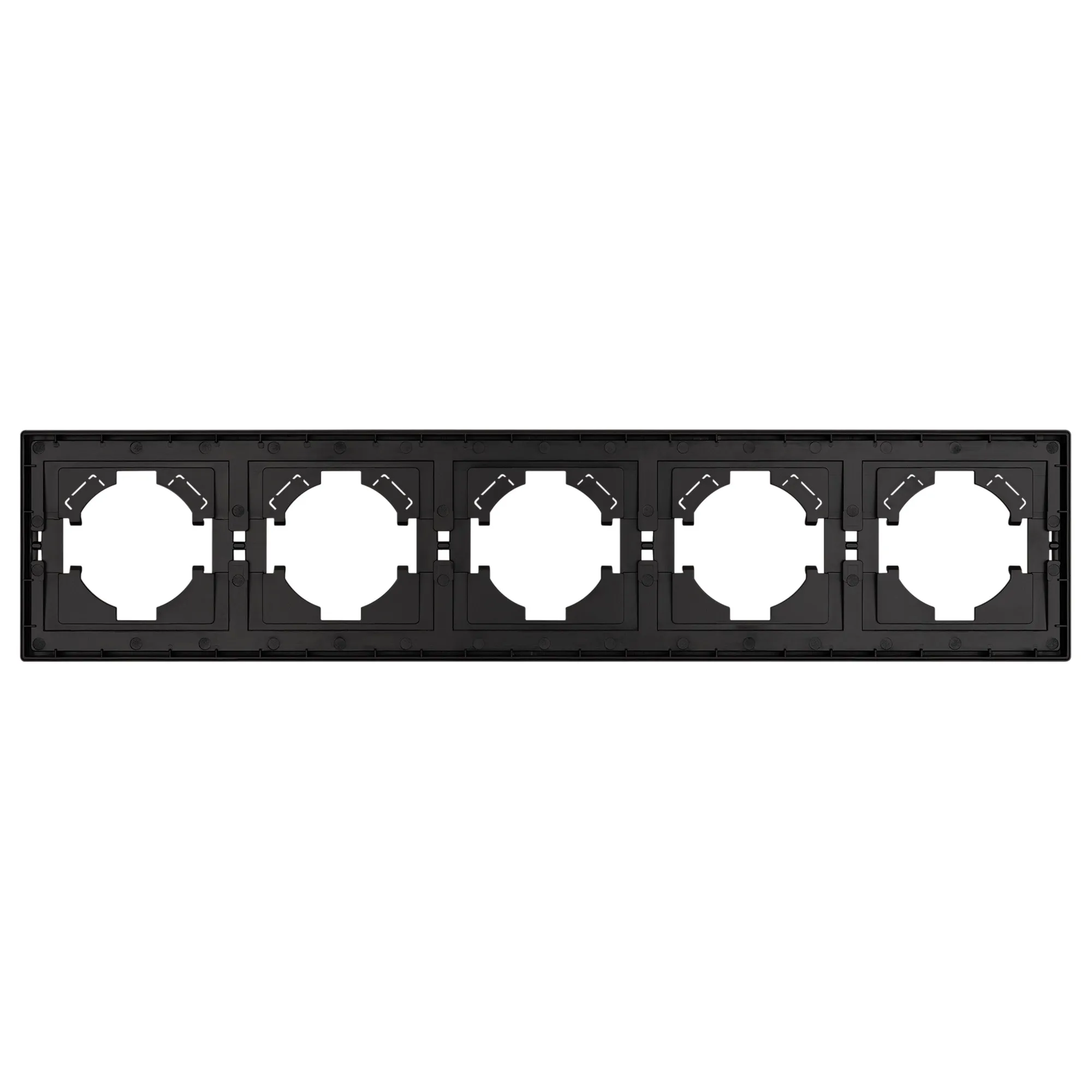 Рамка пластиковая на 5 постов, под встраиваемый механизм. Цвет - черный. Уровень герметичности IP20. Ориентация монтажа горизонтальная.