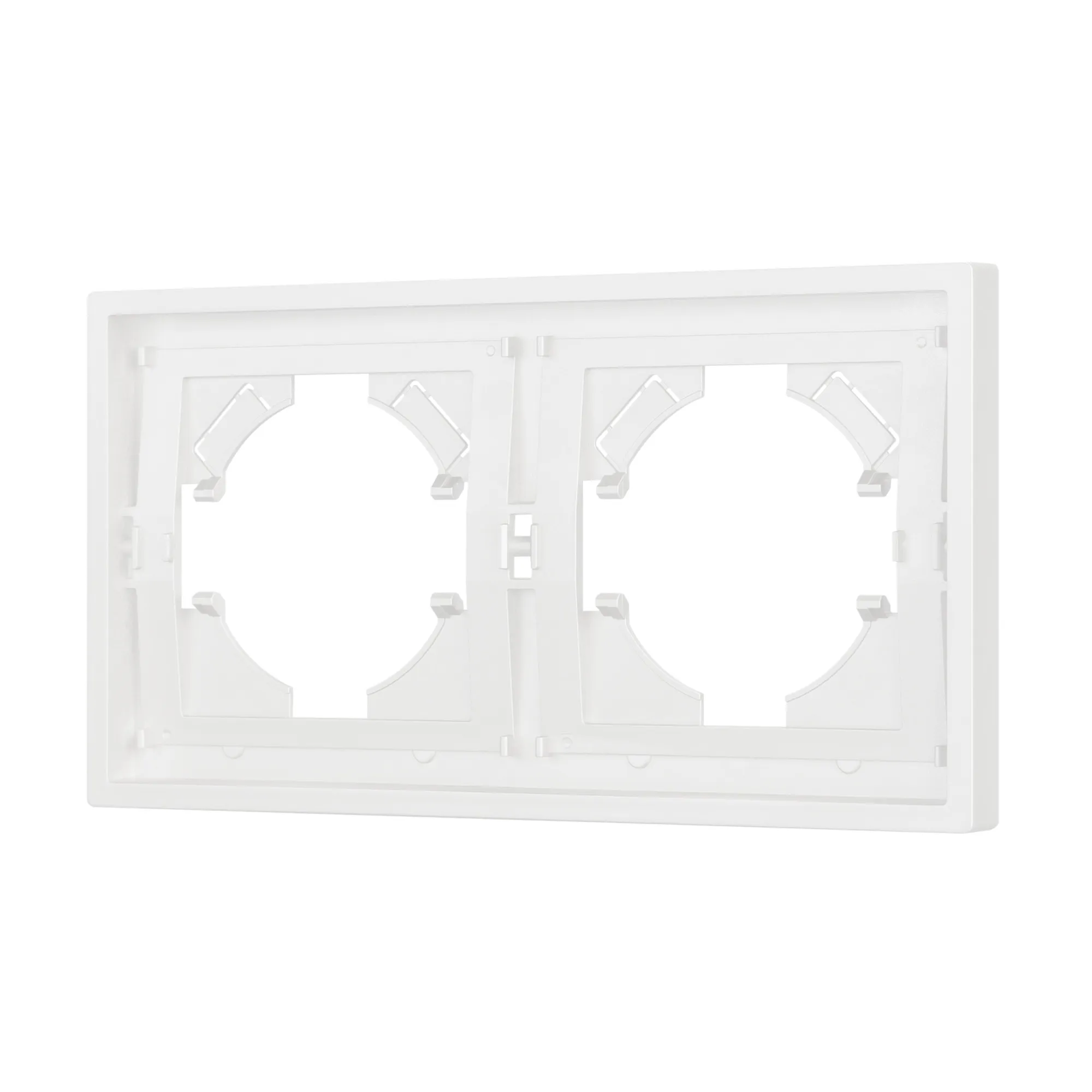 Рамка пластиковая на 2 поста, под встраиваемый механизм. Цвет - матовый белый, с Soft-Touch покрытием. Уровень герметичности IP20. Ориентация монтажа горизонтальная. Габаритные размеры: длина 150 мм, ширина 80 мм, высота 9 мм. Гарантийный срок 12 мес.