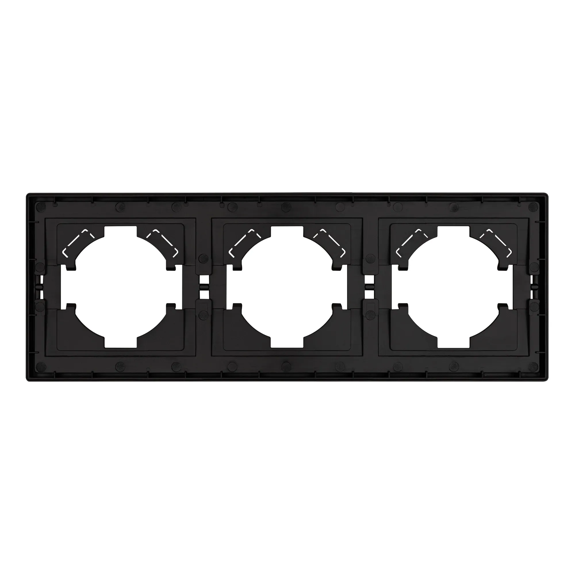 Рамка пластиковая на 3 поста, под встраиваемый механизм. Цвет - матовый графитовый, с Soft-Touch покрытием. Уровень герметичности IP20. Ориентация монтажа горизонтальная.