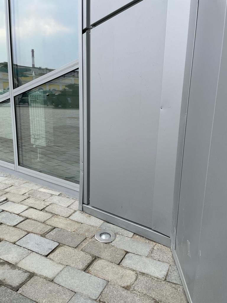 Важную роль в оформлении комплекса играют световые элементы. Светодиодные RGBW-прожекторы были установлены внутри стеклянных конструкций входного павильона музейного комплекса. За счет этого в темное время суток создается динамический эффект заливки помещения светом.